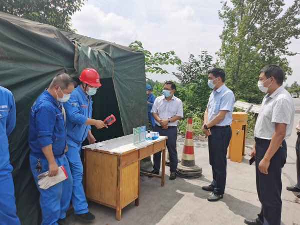 在葛洲坝公司疫情防控点,楚定立、朱晓林认真察看扫码、测温、登记、戴口罩等“规定动作”是否到位,仔细询问企业近期有无中高风险地区流动人员到来。