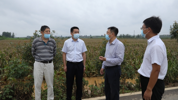 在省农业农村厅二级巡视员卢开阳的带领下,防灾减灾工作组先后到流水镇曾湾村、南营办事处的三桥村、韩公村查看受灾情况,详细询问雨情雨势农情、听取当地农业自救情况汇报。