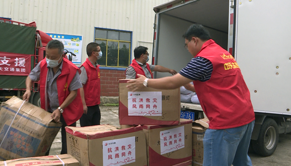 本网讯记者刘毅报道:8月14日,爱心企业中天交通集团为宜城市应急管理局送去4车救援物资,助力防汛救灾。