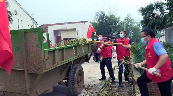 在办事处和村干部的带领下,志愿者们自带铁锹、扫帚等劳动工具,对洪水过后的淤泥、垃圾、废弃物等进行“地毯式”清理转运,并对公共场所及被洪水浸泡过的地方进行消杀。大家分工协作,配合有序,经过近3个小时的共同奋战,村内垃圾和淤泥被清理一空,整个村庄又恢复了干净整洁的面貌,受到村民的连声称赞。