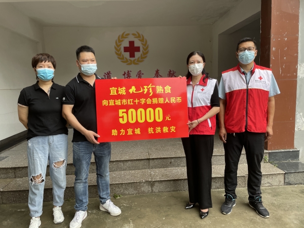 本网讯记者李梦竹通讯员肖道生报道:8月16日,宜城九珍熟食向市红十字会捐赠5万元资金,助力我市防汛救灾工作。