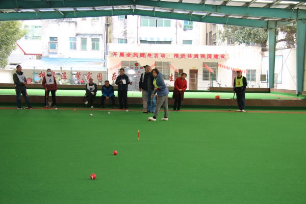 门球是在平地或草坪上用木槌击球穿过铁环门的一种室外球类运动。本次比赛用循环比赛的方式进行,七支代表队的运动员在运动中,锻炼了体力和脑力,加深了相互间的交流。