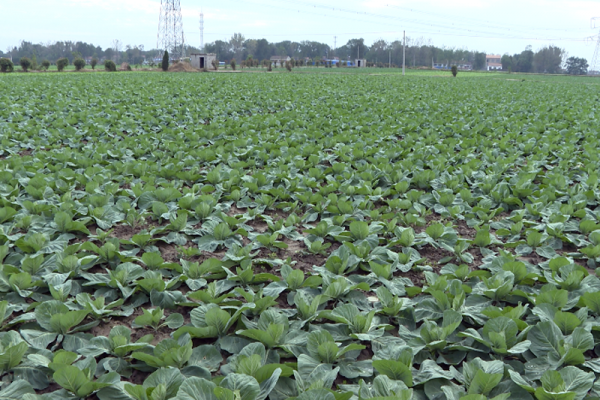 深秋的王集镇千柏村,一望无际的田野里,一颗颗甘蓝菜整齐排列,颜色青翠,长势喜人。