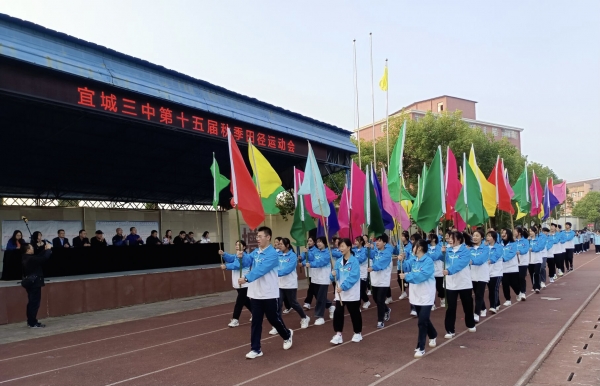 本网讯通讯员张大德报道:10月27日,宜城三中举办第十五届秋季田径运动会,全校30个班,1000多名运动员参加比赛。