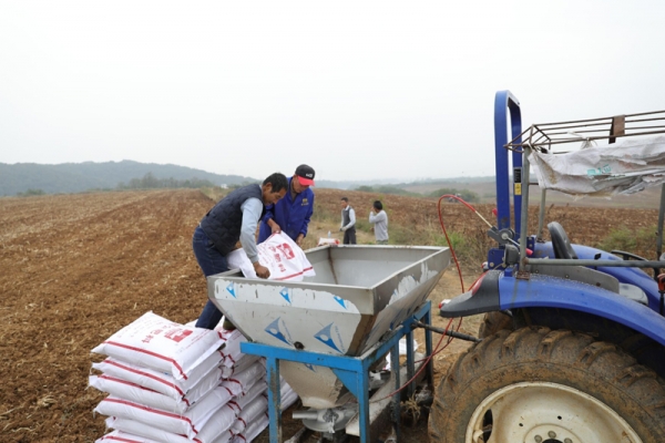 本网讯记者钟军 刘毅通讯员任宏音报道:金秋十月,正是秋播大忙季节,宜城市田间地头一片繁忙景象,农机秋播已经成为当地秋播的主力军。在小河镇梁堰村一块麦田里,一辆播种机来回穿梭,一颗颗小麦种子和肥料从料仓里均匀地落入田地里。1个小时后,村民刘正全的5亩农田就全部播种完毕。
