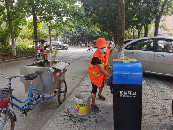 近年来,我市环卫设施逐步壮大,分别新增有9台扫路车,4台洒水车,11台垃圾挂桶车,14台多功能人行道清洗车、16台垃圾运输车以及2台抑尘车等, 垃圾中转站也增加到 21座。不仅环卫设备增加,而且环卫工人也由原来的 403 人增加到584人,不仅减轻了环卫工人的工作负担,同时保证卫生清扫的持续性。市环卫局局长李金亮介绍说,现在宜城的环卫工作已经形成了成熟的双岗制,从早上四点半到晚上九点可进行无缝对接,路面始终都有人在清扫保洁,保证路上垃圾不停留。