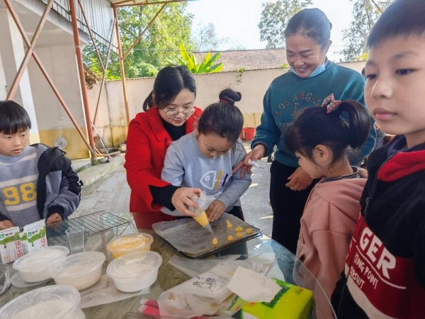 活动现场,糕点老师为大家准备好了鸡蛋、黄油、面粉等烤饼干的材料。在糕点师姐姐的引导下,孩子们与爱心妈妈一起动手创作,发挥想象力,做出自己喜欢的形状。活动的最后,爱心妈妈们带着小朋友们和一起完成的饼干,去福利院看望老人,让留守儿童有一个实践的机会,更是希望他们能够传承中华孝道和敬老之风,助力他们健康成长,更加热爱生活。