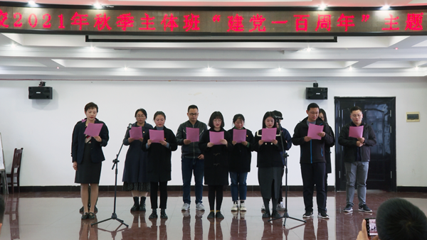 本网讯通讯员王建锋 李俊波 张利平 记者刘毅报道:11月3日,宜城市委党校2021年秋季主题班在教学楼四楼举办“建党一百周年”主题诗词朗诵活动,80多名学员参加活动。