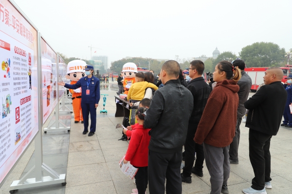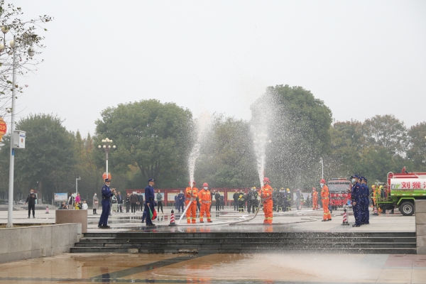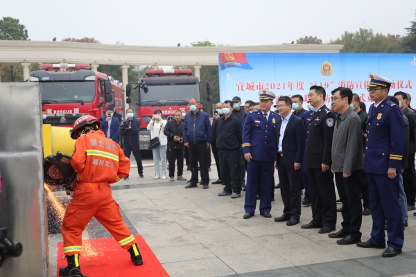 11月4日,宜城市采取“启动仪式+消防演练+现场观摩+消防培训”四位一体的方式,启动“119” 宣传月活动。仪式现场设置了消防宣传展板、各类器材装备展示、LED大屏播放消防警示片、观众现场参与消防、专职消防队员现场演练等五大消防宣传体验项目展区,让市民群众 " 零距离 " 学习消防知识,过足了一把 " 消防瘾 "。
