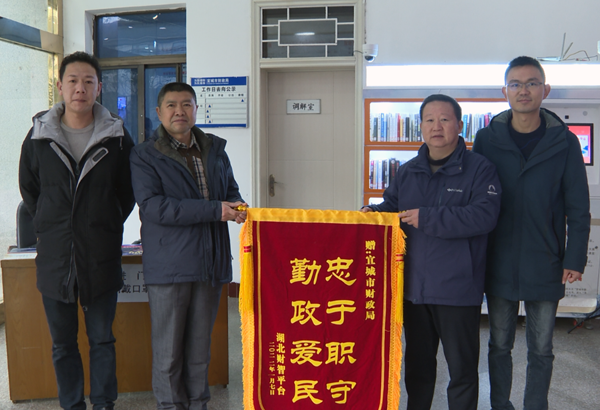本网讯记者刘毅 通讯员张帆报道:1月10日,襄阳财智服务平台宜城相关负责人将一面写有“忠于职守勤政爱民”的锦旗送到市财政局,对该局全心全意为企业服务表示衷心感谢。