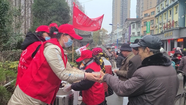 本网讯记者易振波 谢子恒报道:1月10日,宜城市新时代文明实践中心开展2022年"一碗腊八粥,温暖一座城"公益活动,30多名志愿服务者为广大宜城市民送去了腊八节第一碗粥。