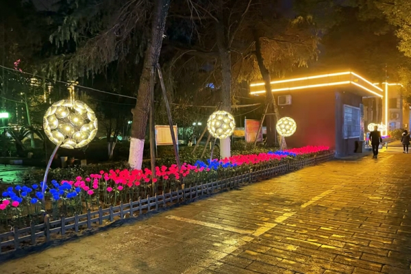 春节前夕,宜城市住建局提前部署,积极策划,组织园林局在城市公园、广场、高速路口、主要街道等位置,安装3000多个灯笼和200多盏彩灯,摆放10万多盆鲜花,营造喜庆、祥和、温馨的节日氛围。