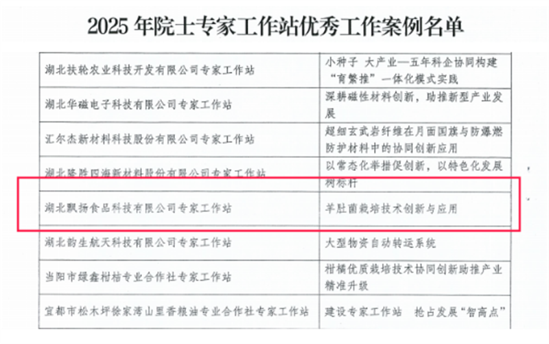 本网讯通讯员史晨曦报道:近日,湖北省科协公布全省院士专家工作站优秀工作案例遴选结果,宜城市科协推荐的飘扬食品科技有限公司“羊肚菌栽培技术创新与应用”项目,成功入选省级“专家工作站”优秀案例。