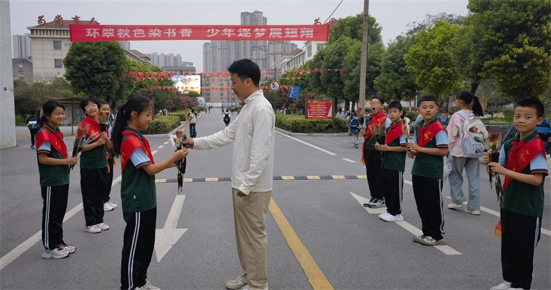 当天一早,校领导与学生代表便手持康乃馨和玫瑰花等候在校门口,迎接每一位教师的到来。“老师,您辛苦了!”“祝老师节日快乐!”伴随着一声声真挚的问候,学生们为老师献上鲜花和精心准备的小礼物。一朵朵鲜花承载着学子们深深的感恩与敬意,老师们的脸上写满了惊喜与感动。