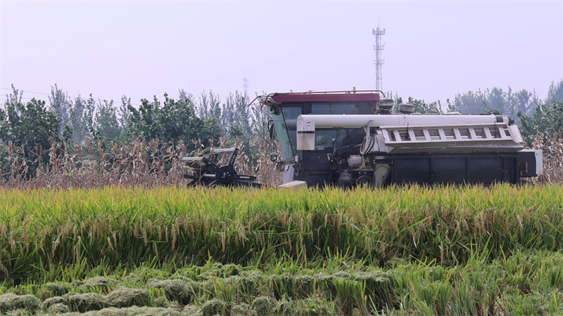 大型机械抢收水稻