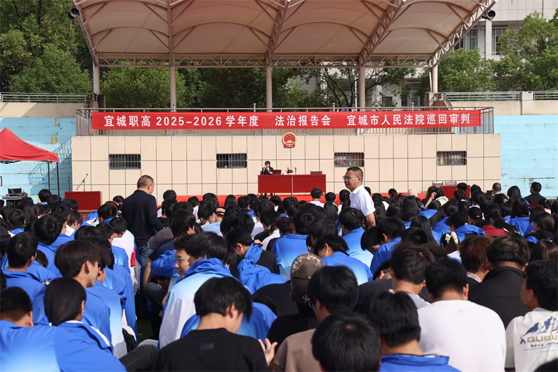 本网讯记者谢子恒通讯员李瑞报道: 9月30日,宜城市人民法院和市职业高级中学联合举行法治报告会,将一起真实的盗窃案件庭审现场“搬”进校园,为全校师生带来一堂生动的“沉浸式”法治教育课。