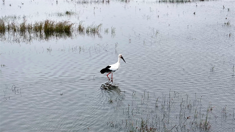 东方白鹳在世界自然保护联盟(IUCN)红色名录中被列为濒危物种,其对栖息地的选择极为严苛,偏好食物丰富、水源充足、生态环境优良的湿地。东方白鹳于2024年1月首次光临宜城万洋洲国家湿地公园,此次再度现身,无疑是对当地生态环境不断优化的认可。
