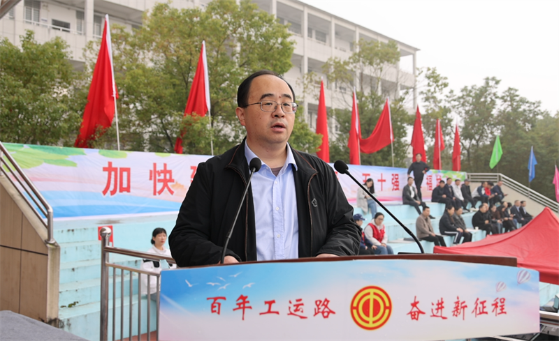 武义泉在开幕式上致辞。他代表市委、市人大、市政府、市政协对运动会的召开表示热烈祝贺,向参加运动会的全体运动员、裁判员和工作人员表示诚挚的欢迎和亲切的问候。武义泉指出,宜城正处于实现赶超跨越、蝶变跃升的“关键期”“窗口期”。把握机遇,实现跨越发展,离不开广大职工群众的智慧和力量,离不开健康的体魄和昂扬的精神。他希望参赛运动员们将赛场作为传承和弘扬工运精神的新舞台,赛出风格、赛出水平,实现竞技成绩和精神文明双丰收,同心协力将本届运动会办成一届安全、团结、精彩的盛会,并将运动场上激发出的拼搏精神转化为爱岗敬业、锐意进取的工作动力,为推动宜城“千亿级、五十强、幸福城”建设迈出新步伐、谱写中国式现代化宜城篇章贡献更大力量。