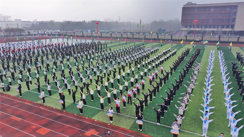 上午8点30分,开幕式在职高学生带来的大型暖场节目《青春跃动 匠心筑梦》中拉开序幕。铿锵有力的鼓点、翻飞舞动的彩扇、动感十足的拉拉操,一系列充满青春活力的表演,将现场气氛瞬间点燃,为即将上场的运动健儿们注入满满能量。