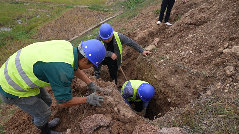 10月31日,在板桥店镇大胡家湾水库,市水利局委托的第三方白蚁防治专业机构工作人员正在挖掘堤坝中的蚁巢,这是他们挖掘的第三个蚁巢,还有工作人员正在进行诱杀、喷药工作,对防治范围进行拉网式防治。