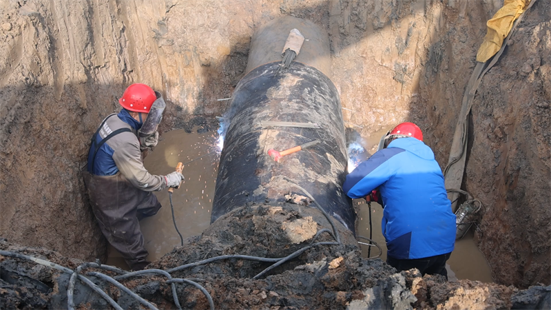 11月2日,记者在前锋村爆管抢修现场看到,10名工人正紧张有序施工,分工协作,全力推进抢修进度。