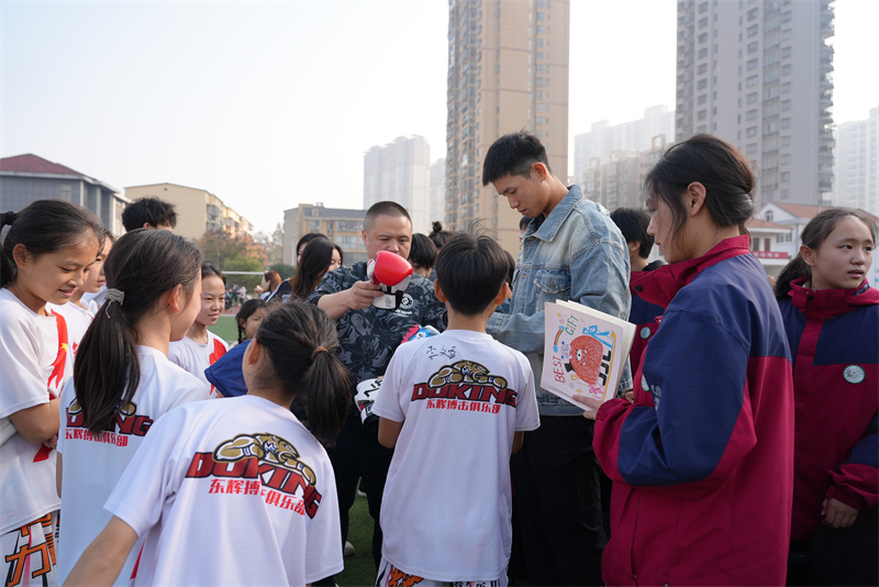 活动当天,体校操场人头攒动。众多学生和家长热情高涨,纷纷上前请求签名、合影,场面温馨而热烈。面对簇拥而来的学弟学妹,李文雷敞开心扉,分享了自己从宜城起步,一路走向全国冠军领奖台的体育生涯。