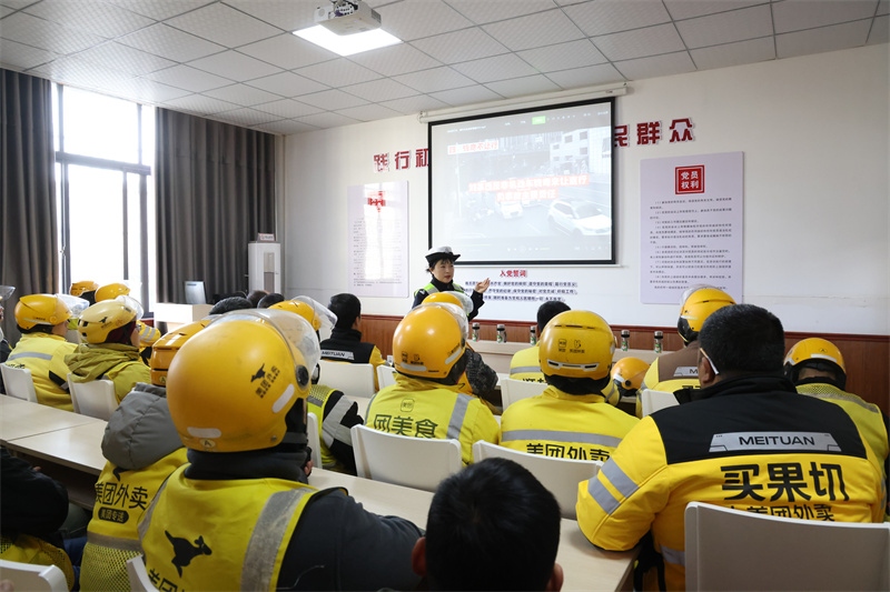 本网讯记者张尚东 通讯员汤洁 李柏林报道:11月27日,宜城市公安局交警大队走进龙头街道紫阳观社区,为外卖骑手量身打造一堂生动的交通安全课。课程通过案例警示、互动问答与路面实践相结合的方式,旨在全面提升骑手的交通安全意识。