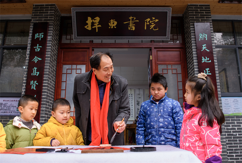 杨捍东19岁时因意外失去右臂,并未向命运屈服,毅然改用左手执笔,凭借惊人毅力重拾书法艺术,将对传统文化的热爱转化为持续奋斗的动力。1998年,他创办宜城市首家书法培训机构——“捍东学堂”,立志“让每个孩子都写好中国字”。27年来,累计培养学生超过2000人,其中518人次在市级以上书法比赛中获奖,多人在全国青少年书画大赛中脱颖而出。