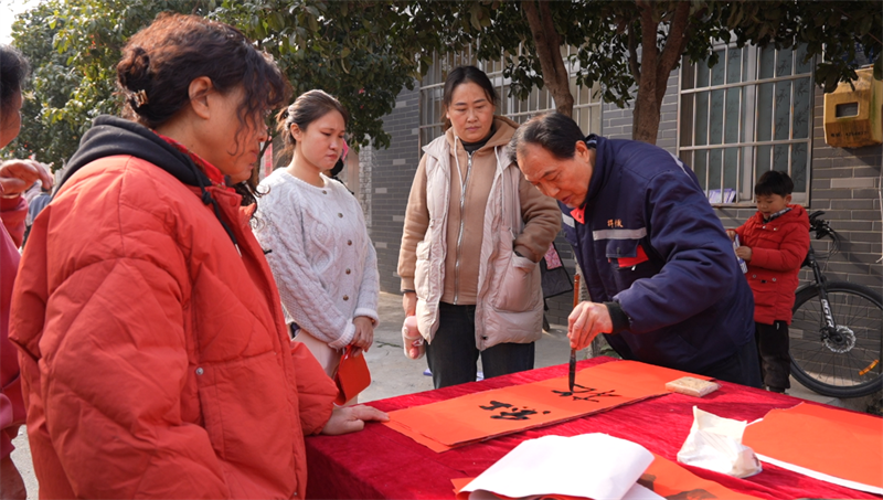 多年来,杨捍东坚守公益初心。他连续10多年到城乡中小学义务授课200余课时,免费开设书法公益课程100余场,赠送书法作品、教材及报刊资料不计其数;每年春节前夕,他自备纸墨下乡为村民写春联、送祝福;他还多次组织“书法进乡村”活动,带领学员绘制文化墙,将《兰亭序》《赤壁赋》等经典名篇化作田间地头的艺术风景。2023年,他率队在乡村绘制30面文化墙,让千年文脉在乡土中生根发芽。