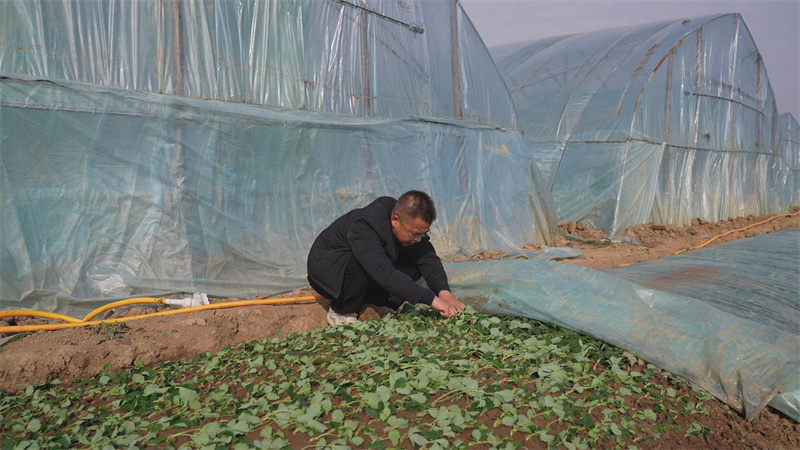 袁武查看草莓长势