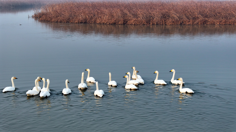 作为国家二级保护动物,小天鹅对栖息地环境要求极高。近年来,该管理处通过实施一系列生态保护措施,持续加强鸟类资源保护与栖息地管理,使万洋洲湿地生态环境得到显著改善,野生鸟类数量不断增加。