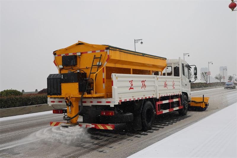 提前启动应急备战模式,从物资、设备、人员、技术等方面做好全面准备。雪情发生后,除雪作业车辆立即奔赴振兴大道、燕京大道、鲤鱼湖大桥等重点路段及桥梁开展撒盐除冰。工作人员根据雪情实时调整作业节奏,在易滑路段加大频次,确保融雪剂充分覆盖,快速恢复道路通行条件。