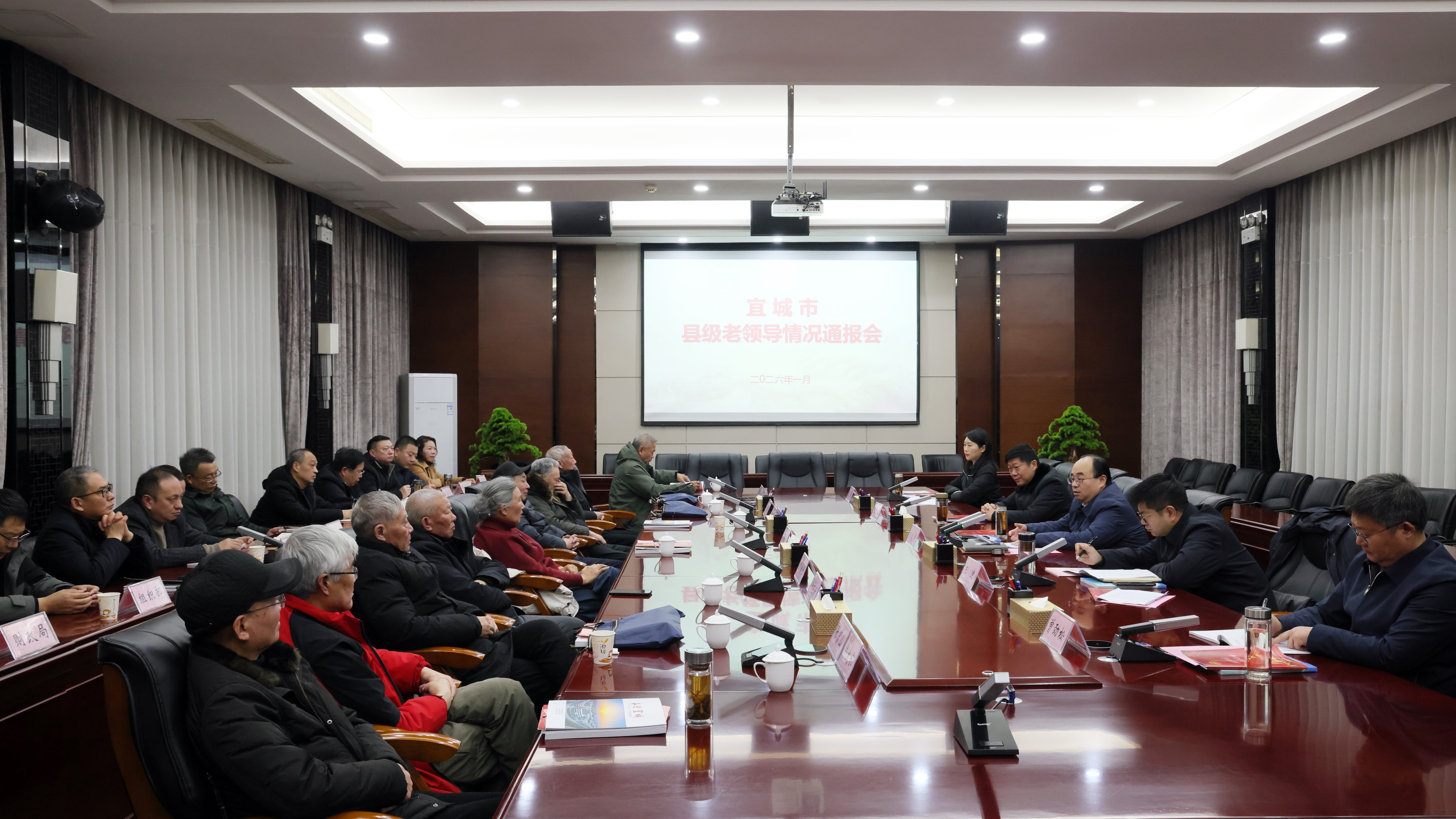 王迪通报2025年全市经济社会发展情况及2026年工作安排。他表示,宜城发展的每一步都凝聚着老领导的智慧与汗水,期盼大家继续发光发热,多提宝贵意见。市政府将持续优化服务保障,全力营造安心、舒心、暖心的环境,让老领导老有所养、老有所乐、老有所为。