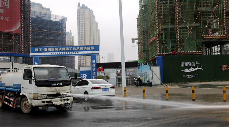 除日常保洁外,市环卫局重点加强在建工地周边环境管控。在御湖别苑工地,工作人员正在冲洗进出口路面。“我们督促全市13个在建工地常态化冲洗进出口,从源头防治车辆带泥上路和扬尘问题,并地毯式清理乱堆乱倒的建筑垃圾。”市环卫局固废办执法人员桂山虎介绍。
