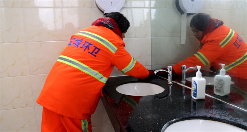 公厕保洁也得到重点强化。在高速路口旁公厕,环卫工人仔细擦拭设施、清扫地面、全面消毒,确保公厕干净整洁、无异味,为市民提供舒适便捷的环境。