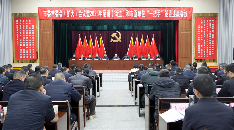 本网讯记者谢子恒 李勤 通讯员胡明慧报道:2月11日,宜城市委常委会(扩大)会议暨2025年度镇(街道)和市直单位“一把手”述责述廉会议召开。市委书记武义泉主持会议并强调,要深入学习贯彻习近平总书记关于党的自我革命的重要思想,以更高站位、更实举措、更高标准、更严要求,一以贯之推进全面从严治党,为全市高质量发展提供坚强保障。市委副书记、市长王迪,市委副书记魏迎庆,市人大常委会主任陈进雷,市政协主席曾劲松等参加会议。