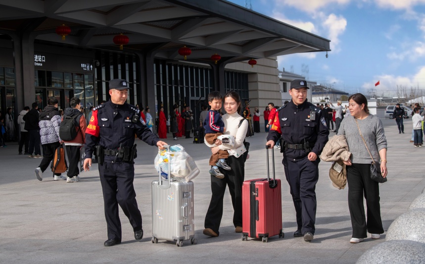 “请大家排好队,提前准备好身份证。”“带小孩的旅客请牵好孩子,注意脚下安全。”在检票口和扶梯处,执勤民警手持小喇叭,反复提示、耐心引导,用一次次叮咛筑牢安全防线。