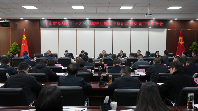 本网讯记者邬玲玲 李明磊通讯员邬云波 杨涵报道:3月5日,全市群众身边不正之风和腐败问题集中整治攻坚决战工作部署会召开。市委书记武义泉参加会议并讲话。他强调,要认真贯彻落实中央和省、襄阳市“群腐”集中整治工作部署要求,纵深推动“群腐”集中整治走深走实,以“总体战”的全面胜利为“千亿级、五十强、幸福城”建设作出新的更大贡献。市领导朱晓林、周杉、杨海涛、张雪峰、陈珊、付青峰参加会议。