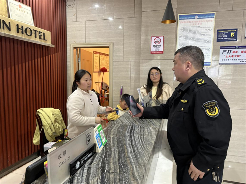 工作人员在酒店开展赛前专项监管检查