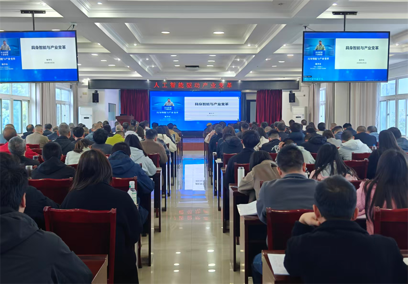 讲座中,陈学东教授紧扣人工智能发展前沿,从具身智能的基本概念、智能机器人技术与产业、传统产业发展新范式三个方面展开讲解,用通俗易懂的方式解读专业知识,结合产业发展实际,深入剖析人工智能技术应用与传统产业转型升级路径,让学员们对人工智能技术、产业发展及实践应用有了全面、系统的认识。