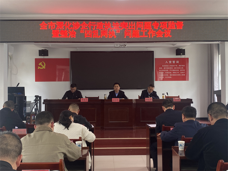 会议传达省、襄阳市及各级纪检监察机关相关工作要求,对涉企执法突出问题专项监督及“四乱两执”整治民生实事工作进行部署。市公安局、市市场监督管理局等单位作表态发言。市纪委监委派出第八纪检监察组通报第一季度问题查纠情况,明确当前涉企执法突出问题整治的高压态势,严明工作纪律。