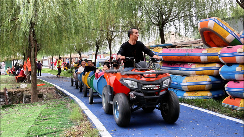 近日,记者在“醉美莺河”景区看到,游客们或乘竹筏游湖,或漫步乡间小道,大人和孩子们的欢声笑语与秋日风光交织,构成一幅生动的乡村度假画卷。