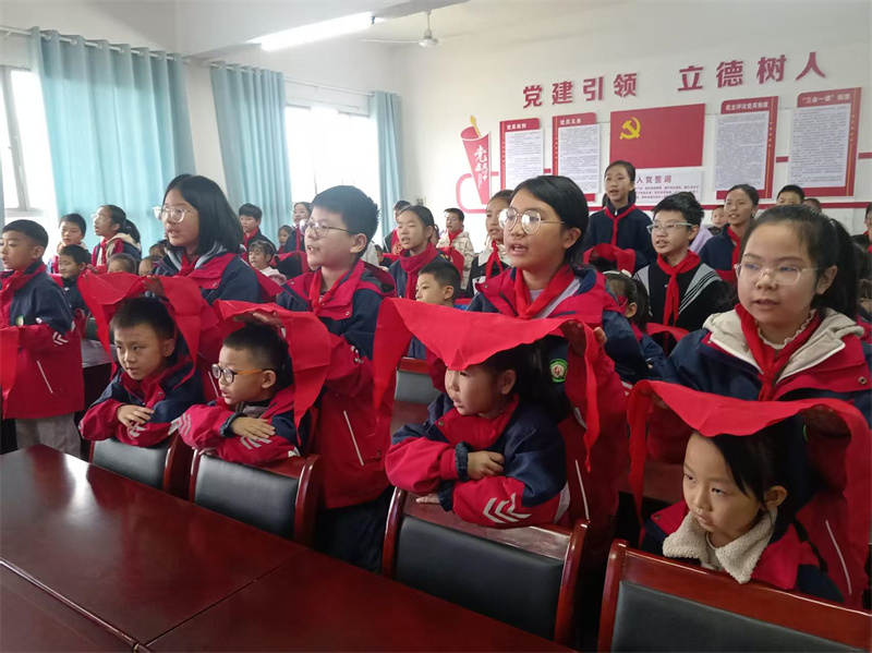 新队员代表李一诺表示,将以大哥哥大姐姐为榜样,勤奋学习、关心集体,努力为红领巾增光添彩。
