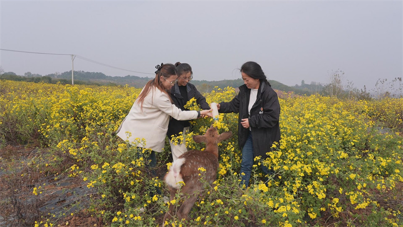 “从未见过如此壮观的花海,还有梅花鹿相伴,仿佛走进了童话世界。”来自宜城的游客黄佳欣表示,“小鹿一点也不怕人,还会主动靠近,这种感觉太奇妙了。”