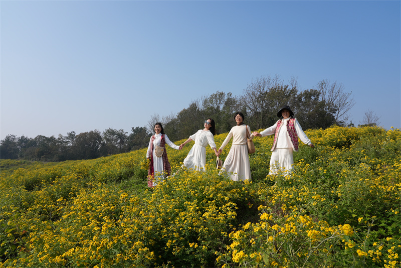 “听说这里的菊花开得特别好,今天专程从襄阳开车过来,果然名不虚传。这么大片的花海,看着就让人心情舒畅!”游客邱女士一边拍照一边兴奋地说,“我们拍了好多照片和视频,准备发朋友圈好好‘炫耀’一番。”