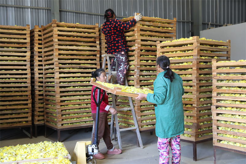 丰收的喜悦背后,是村民对未来的长远规划。石江涛一边查看烘干中的菊花,一边透露他的下一步计划:“目前正在申请商标,计划进一步丰富品种,走品牌化发展道路,提升菊花产品的附加值。”
