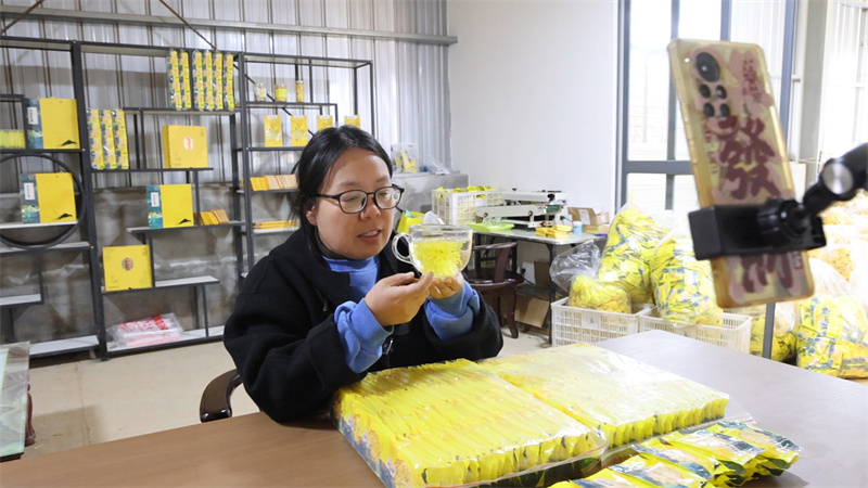 “以前我们都是把花批发到安徽亳州,现在通过直播,一场下来销量很可观,价格也更理想。”石江涛说。