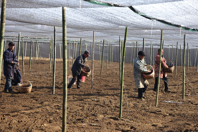 村民们播撒菌种