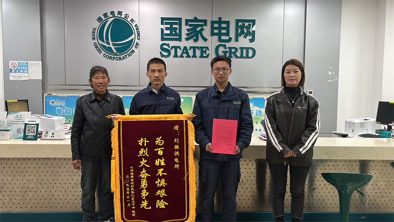 本网讯记者刘妙然 范冬婷 通讯员梁梦报道:11月28日,刘猴镇石河村村民张仁梅专程到刘猴供电所,将一面写有“为百姓不惧艰险 扑烈火奋勇争先”的锦旗和一封感谢信送到供电所员工杨鹏程手中,代表其兄长张仁富全家表达诚挚谢意。