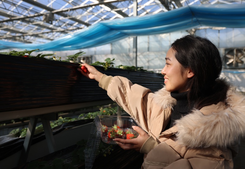 通过科学的种植和精细化管理,基地不仅提升草莓的品质与产量,还形成集观光、采摘于一体的农旅体验模式,有效带动农户增收。